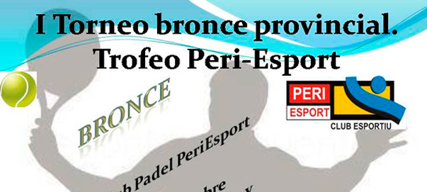 Torneo de Pádel Bronce en Periesport, instalaciones de pádel ubicadas en Castellon, la fecha límite para el torneo de pádel será el 18 de Septimbre de 2013 siendo la fecha del torneo del 23 al 29 de Septiembre de 2013