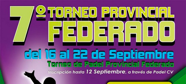 Septima edición del Torneo de pádel Federado Indoor en Padel Indoor CS cuyas instalaciones se encuentran en Castellón, tendrá 3 categorías, masculina, femenina y mixta, puntuable para el ranking provincial y autonómico. Fecha: Del 16 de Septiembre al 23 de Septiembre. Precio: Precio 20€ por jugador Inscripción:...