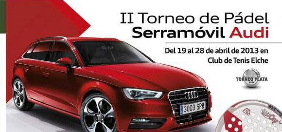 Del 19 al 28 deabril de este 2013 dará lugar el II Torneo de pádel Serramóvil Audi en el Club de Tenis de Elche. Es un torneo de padel plata en el cual podran participar las categorias federadas 1ª,2ª masculina y segunda femenina. Sin embargo el la...