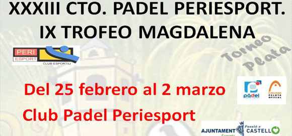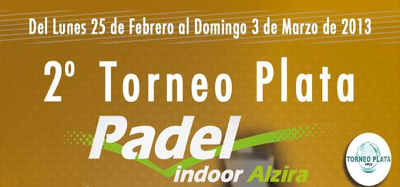 Segundo torneo de pádel plata en Alzira en el Club de pádel Indoor de Alzira. Se disputará desde el lunes 25 de Febrero hasta el domigo 3 de Marzo de este 2013. En el torneo podrán participar las categorias masculinas federada y la femenina también federada, ambos...