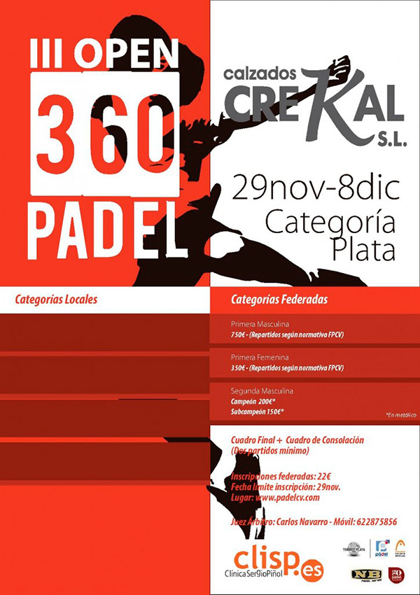 Torneo de pádel bronce en el club de pádel Padel360 , instalaciones situadas en Elche , torneo patrocinado por el club de pádel y calzados Crekal